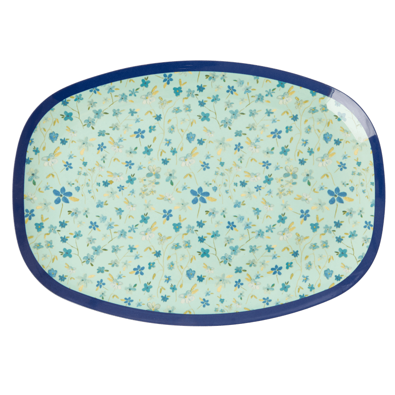 Met deze prachtige Melamine Plate “Mint Blue Floral Print” eet je letterlijk uit een Bloemenveld!