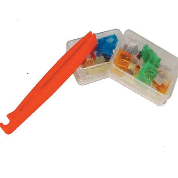De set zekeringen bestaan uit 22 verschillende types zekeringen 12V 5 – 30A groot, welke gebruikt kunnen worden in de stroomvoorziening van uw auto, caravan of camper.